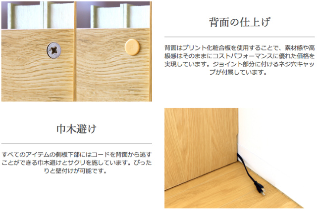 素材・塗装 | [前板]…ホワイトオーク無垢材/ウォールナット無垢材 |
