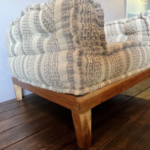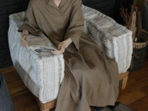 丸いくるみボタンがアクセントとなり、厚みのあるずっしりとした座面が体を受け止めます。