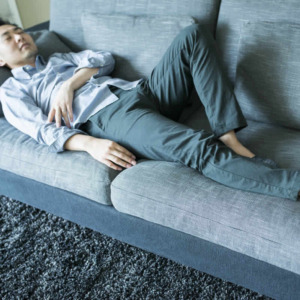 広い座面は横になりやすく、包み込まれる寝心地です。