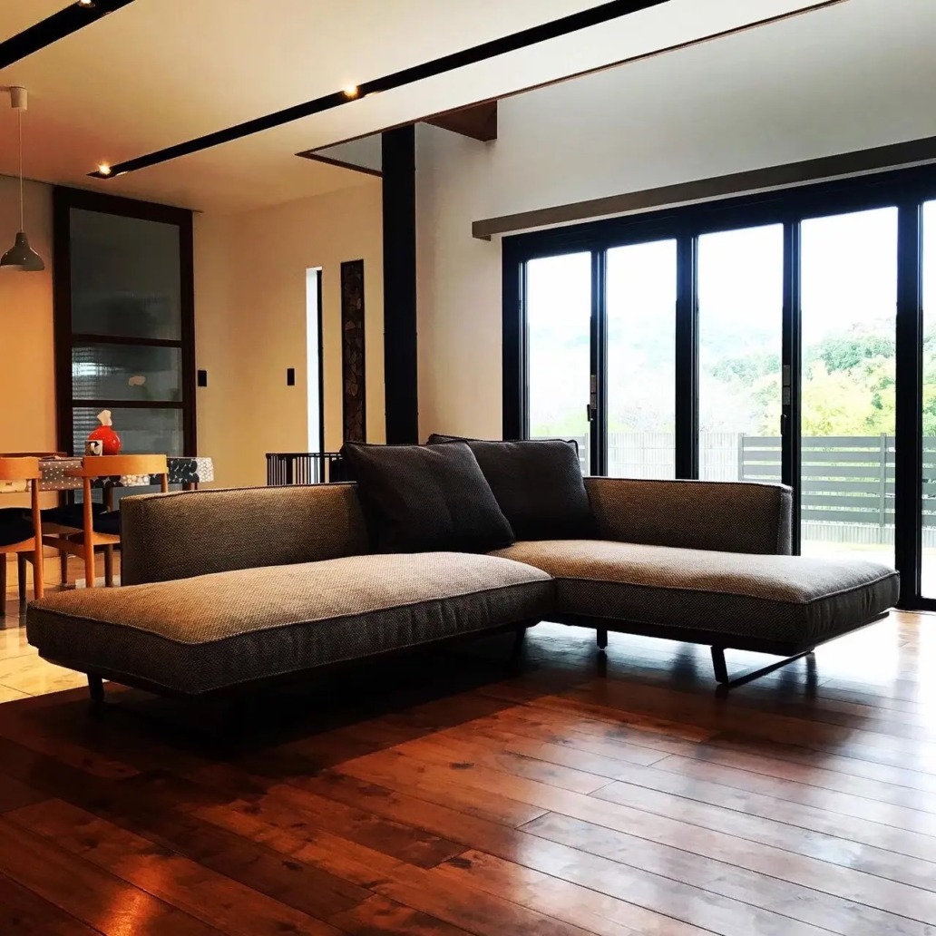 リビング納品事例/シャープなラインが高級感を際立たせるゆったりソファ