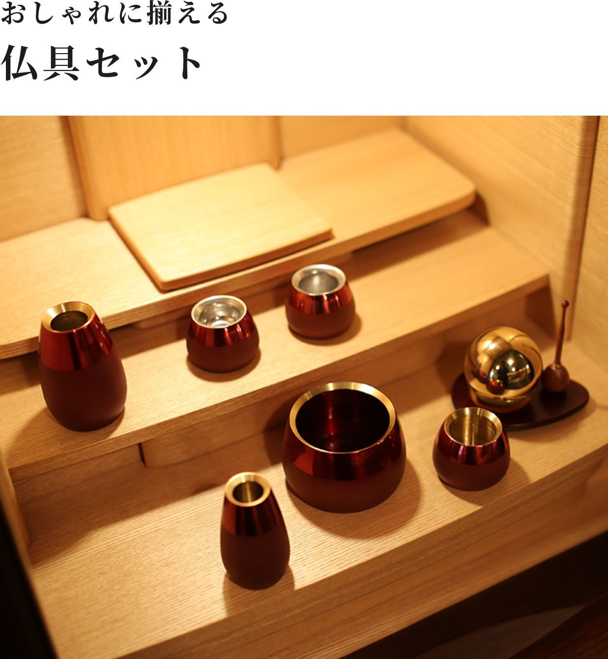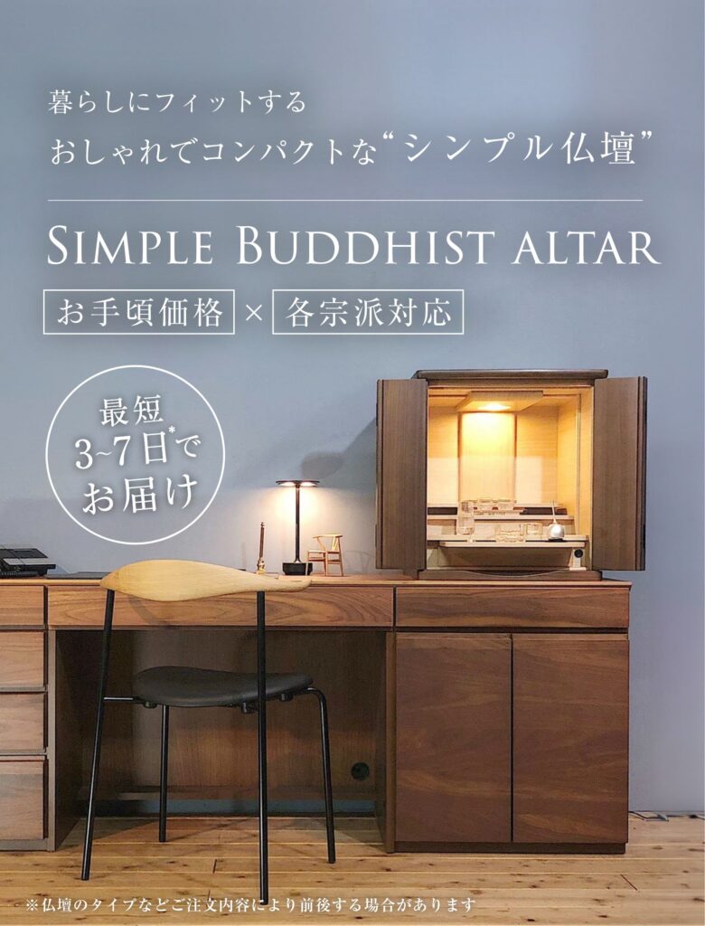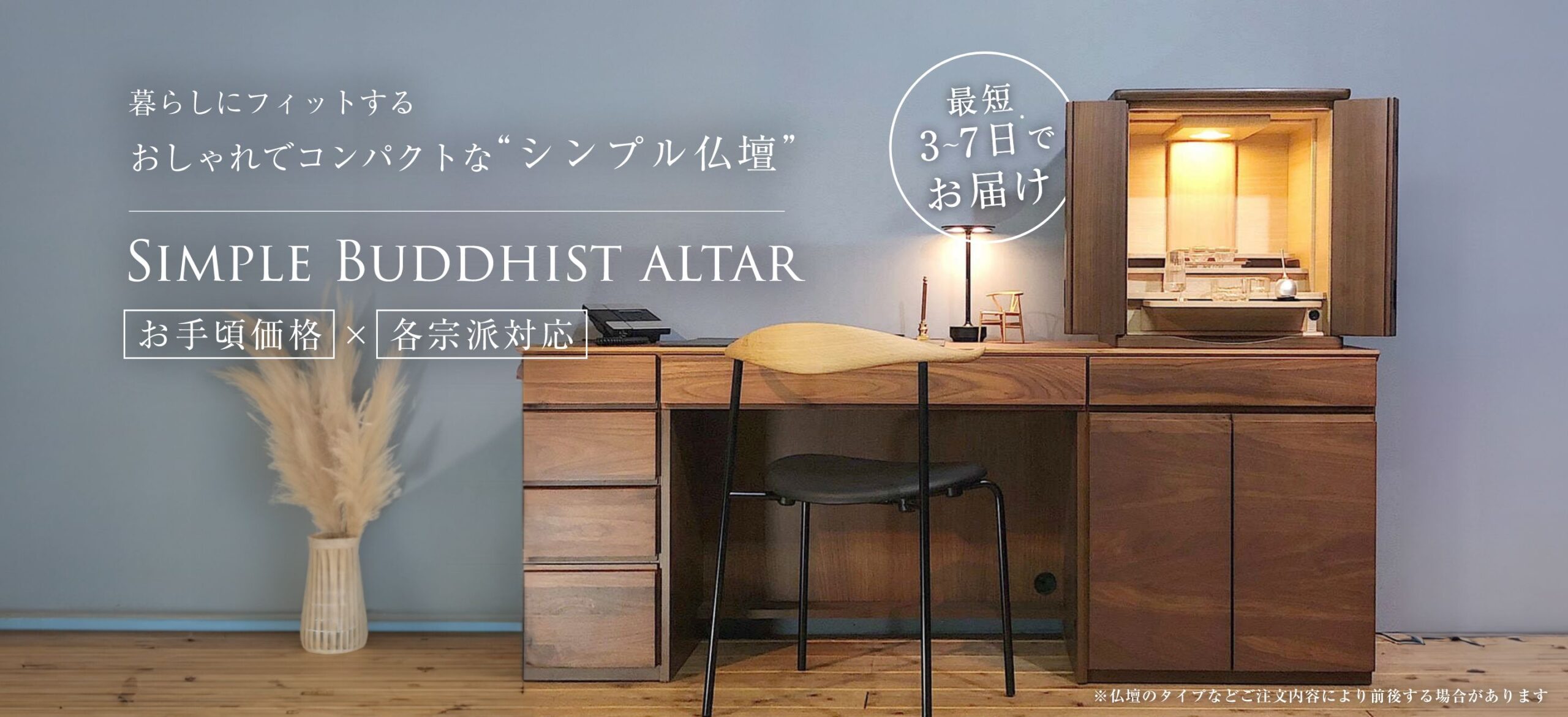 すっきりしたシンプルなデザインが人気です。シンプル仏壇は、リビングや落ち着いた和室など、どの部屋のインテリアとも調和するデザインのものを揃えております。おしゃれな仏具もございます。