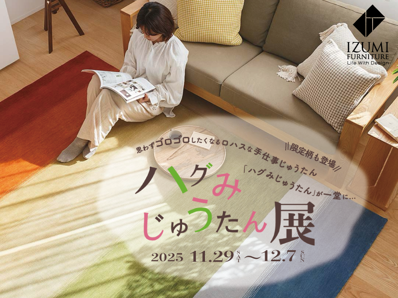 この度、天然素材のぬくもりと心地よい肌触りで人気の「ハグみじゅうたん展」を、11月29日(土)〜12月7日(日)までの期間限定で開催いたします!