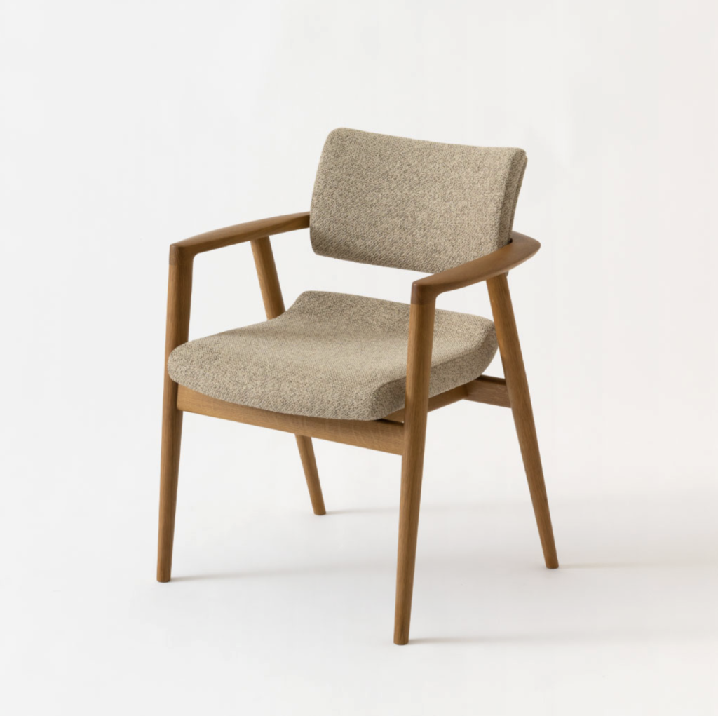• 軽やかな印象: 背もたれから脚にかけての流れるような接合部(フィンガージョイント)は、強度を保ちつつ視覚的な美しさを極めています。