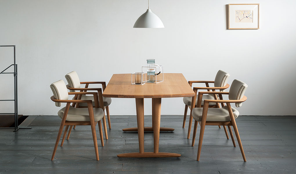 • 職人技の結晶: 伝統の「曲げ木」と最新の「5軸加工機」を駆使したシャープなラインは、もはや家具というよりアート。