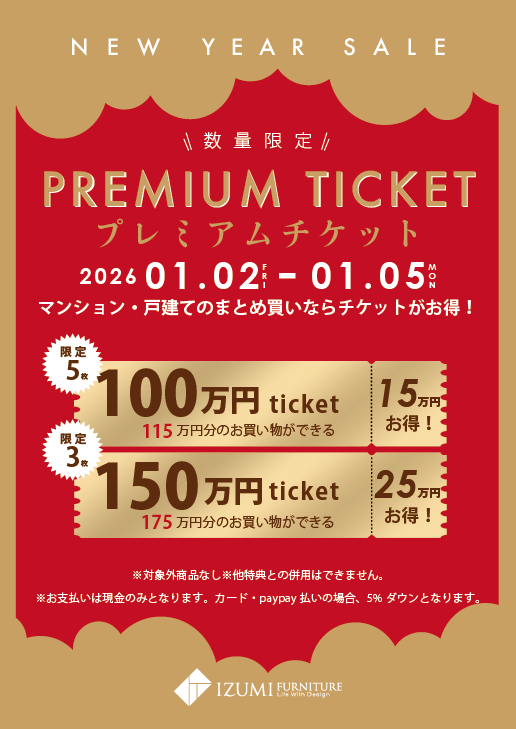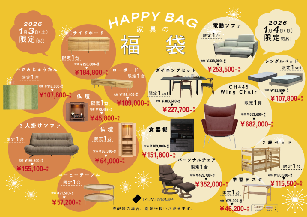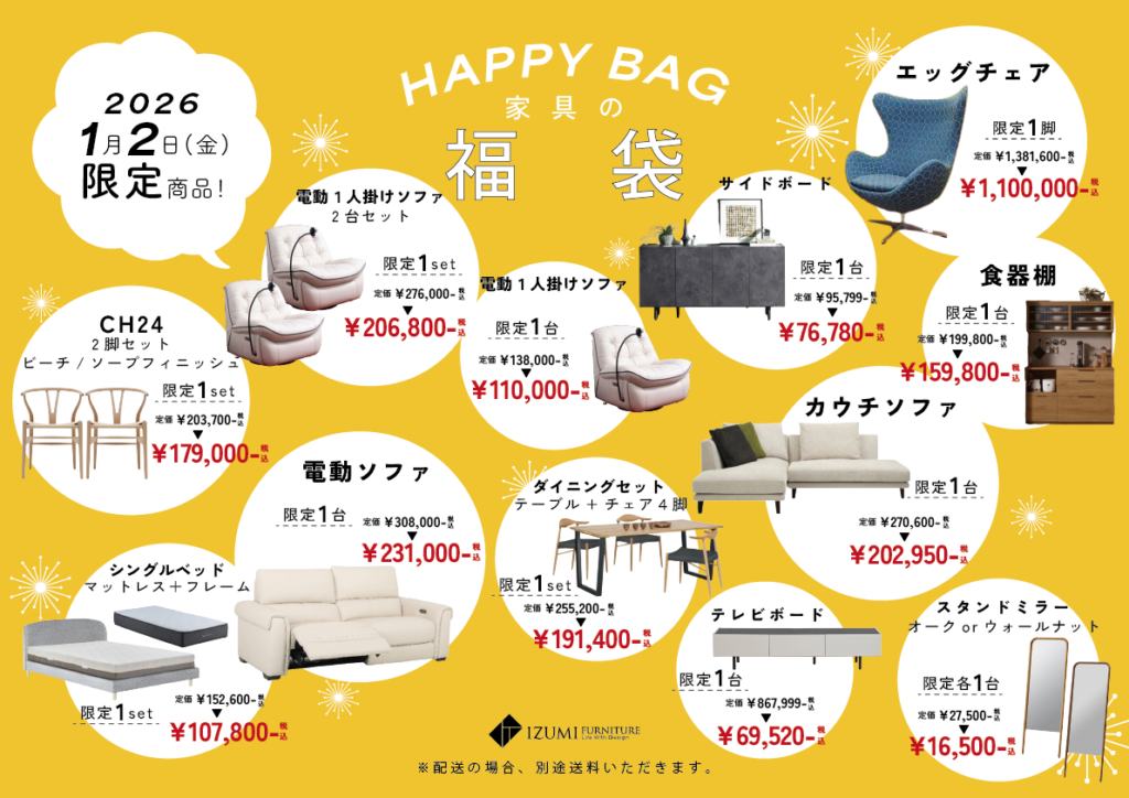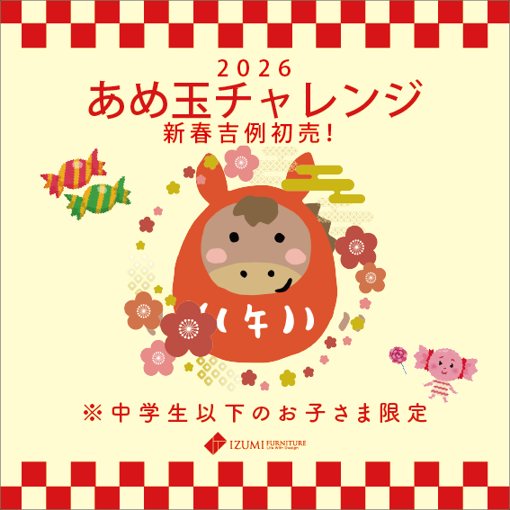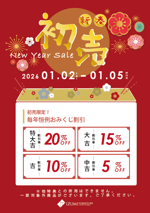 イズミファニチャーからの年賀状が届いた方はぜひ、初売り期間中にお越しください。