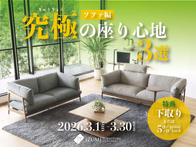 イズミファニチャーで人気の座り心地抜群のソファをご紹介 3月の足音が聞こえ、春の模様替えや新生活に向 […]